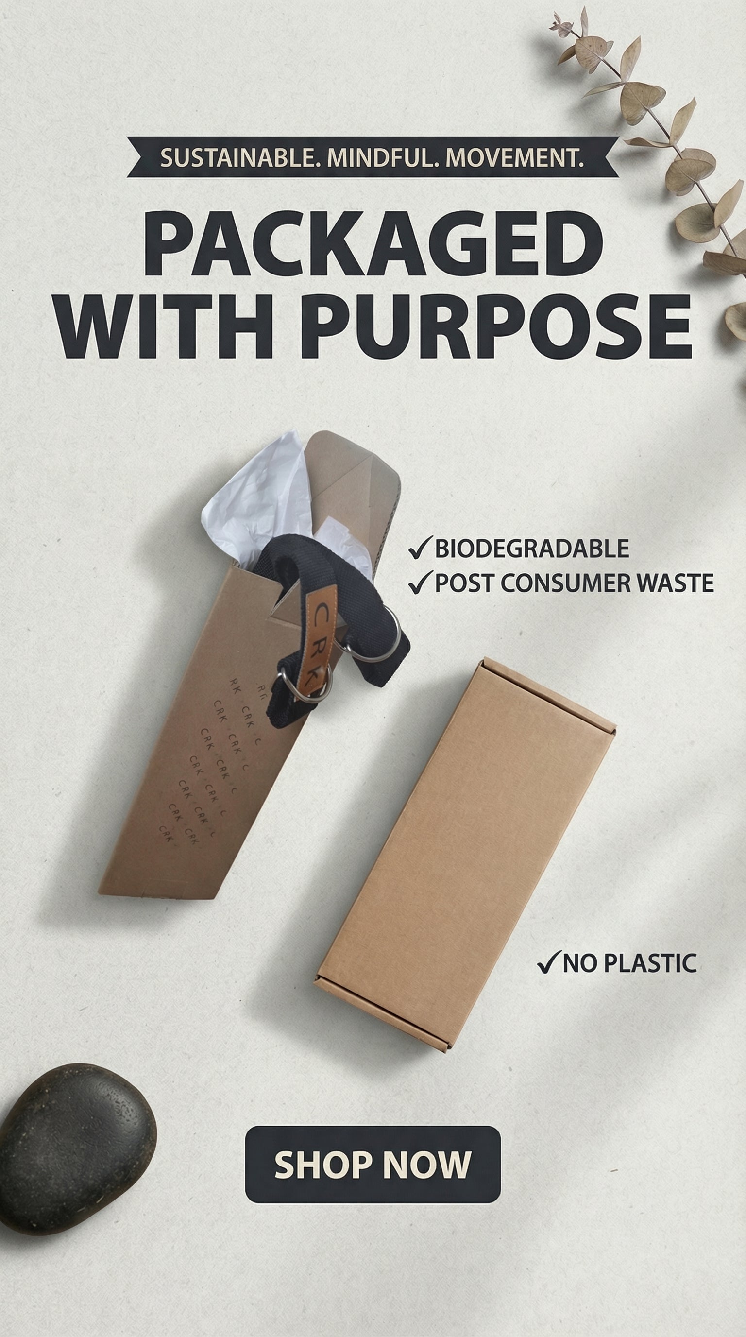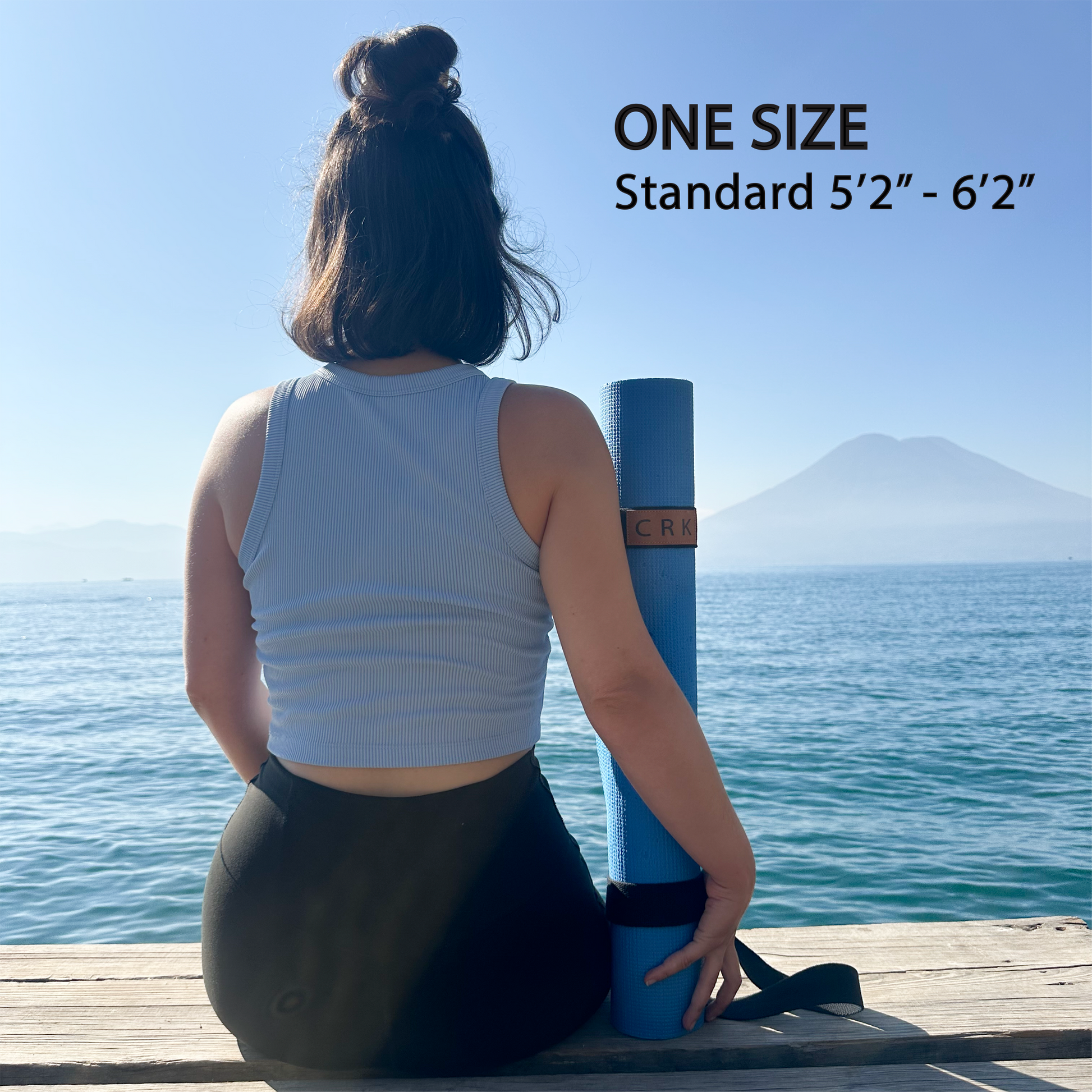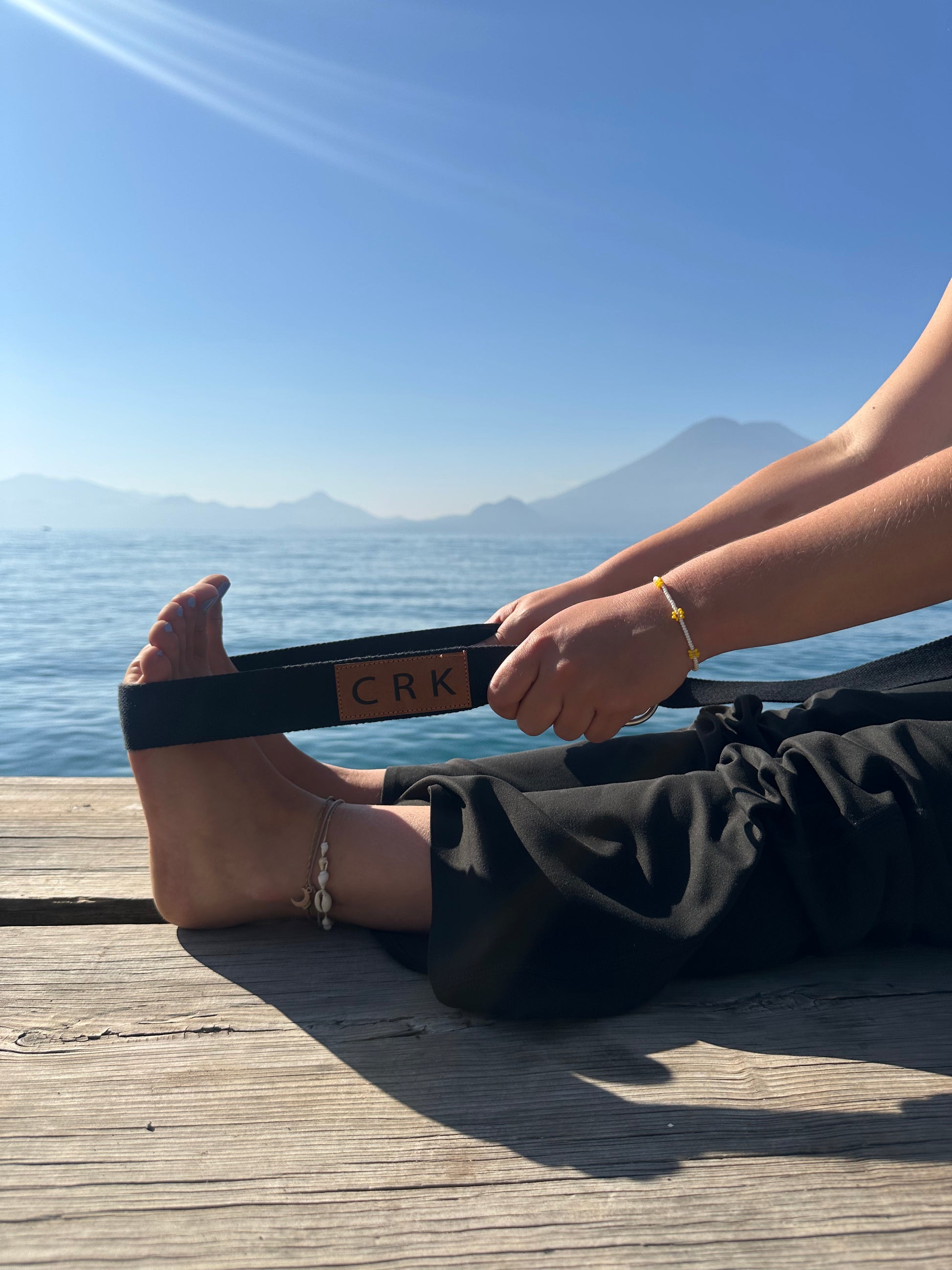 This yoga strap doubles as a travel and stretching strap for your practice. It’s adjustable and fits perfectly on my CRK yoga mat! The packaging is also super efficient and recyclable. Thank you, CRK!