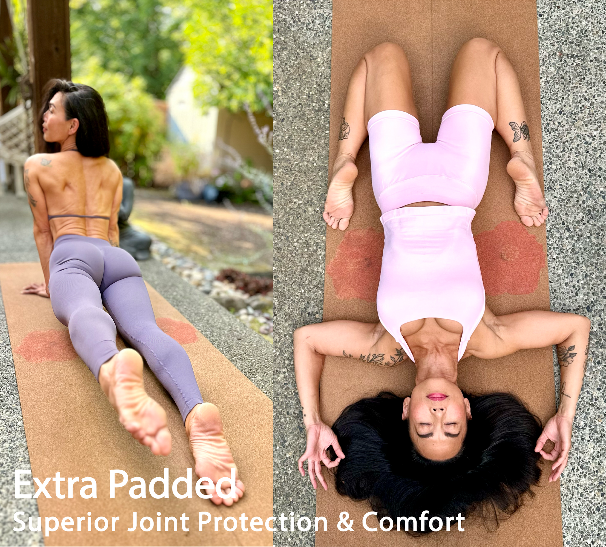 Piyaporn Frazzini I absolutely love this flower 5mm cork yoga mat from CRK!! The natural cork surface feels amazing under my hands and feet—grippy, even during sweaty sessions—and the rubber underside keeps it firmly in place no matter what pose I'm in. The thickness is just right: enough cushioning to protect my joints without feeling too soft or unstable.